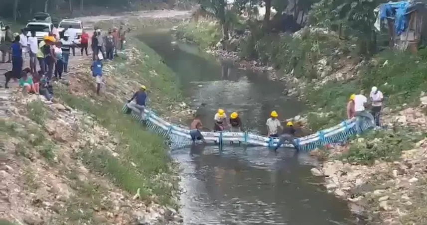 Las entidades instalaron un circuito de biobardas en la cañada, próximo al sector La Arenita en La Puya de Arroyo Hondo, para retener la basura y evitar que llegue al Río Isabela.