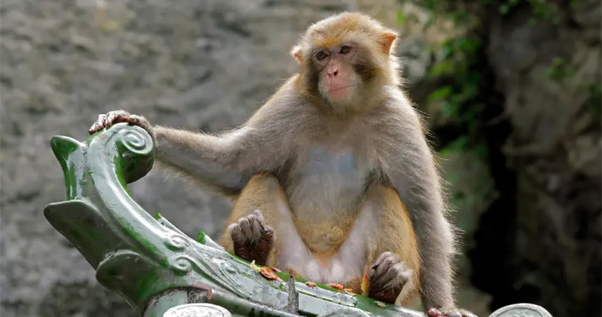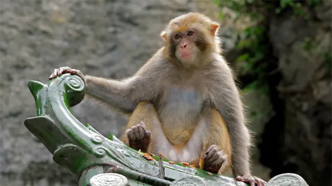 El Rhesus es un macaco típico. Los machos crecen y alcanzan una altura de 60 cm, con una cola de unos 30 cm. Presentan dimorfismo sexual; los machos pueden pesar hasta 6 kilogramos y las hembras hasta la mitad y medir 40 centímetros.