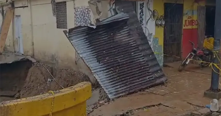 Diez viviendas resultaron afectadas en Quebrada Amarilla debido a las intensas lluvias que impactan el Distrito Municipal de Las Gordas.