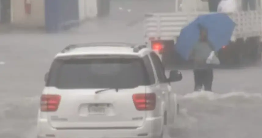 Un hombre quedo atrapado dentro de su vehículo al intentar cruzar una calle inundada en Los prados, a pesar de ser advertidos por brigadistas del Distrito Nacional.