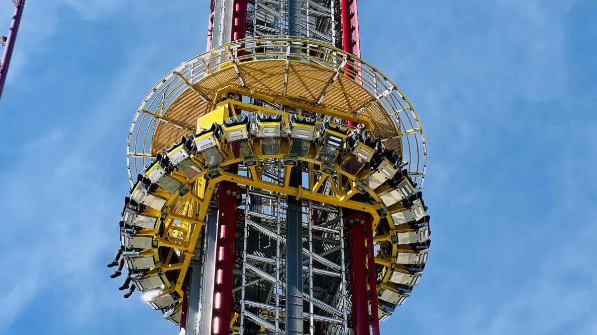 Dicha atracción eleva a los usuarios hasta esa altura, se inclina para que miren al suelo durante uno o dos instantes y luego cae en picada hacia el suelo a velocidades de unos 121 kilómetros por hora (75 millas por hora) o más.