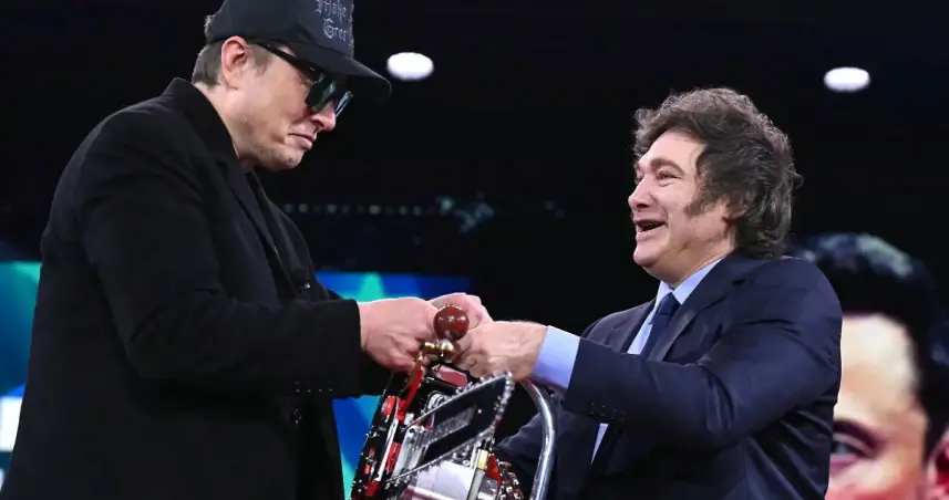 El dueño de X y consejero delegado de Tesla y SpaceX presumió de la motosierra en su ponencia. "Milei tiene un regalo para mí", dijo a una audiencia que se puso en pie al recibirlo.