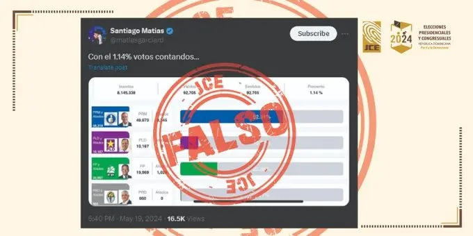 JCE desmiente publicación de Santiago Matías sobre resultados de elecciones