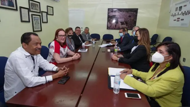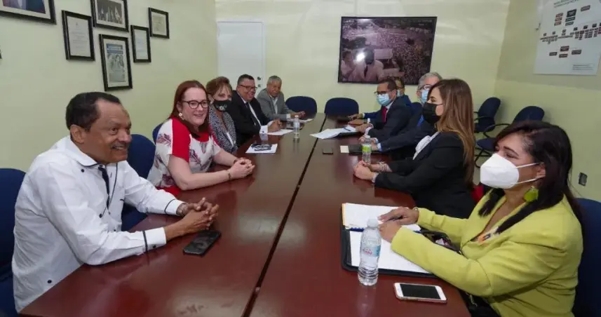 La comitiva del PRD, integrada por Peggy Cabral, Janet Camilo, Fernando Pérez Vólquez, Marino Mendoza y Héctor Guzmán, recibió a los representantes de la Junta.