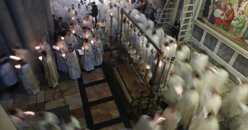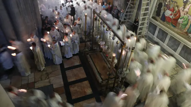 La jornada empezó a primera hora con una misa matutina en el Santo Sepulcro, el lugar más sagrado del cristianismo, donde la tradición marca la crucifixión de Jesucristo y su posterior resurrección.