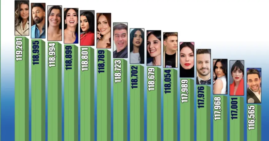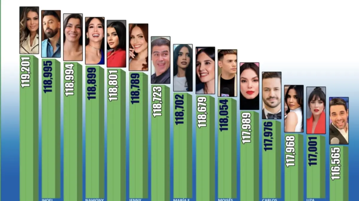 Entre los primeros diez puestos también figuran nombres como Caroline Aquino (1.º), Jhoel López (2.º), Nashla Bogaert (3.º), Nahiony Reyes (4.º) y Ana Beato (5.º), todos con un alto número de votos que reflejan su impacto y cercanía con el público.