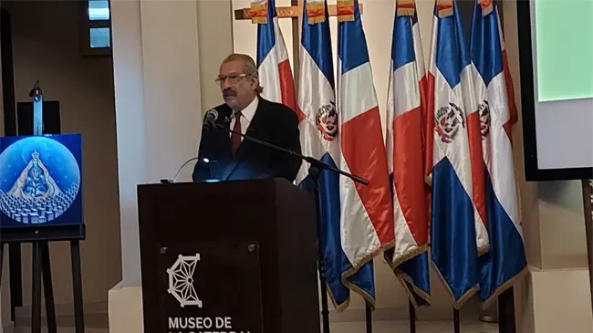 Guerrero explicó que el verdadero milagro no fue la aparición de la Virgen de las Mercedes durante una batalla en 1495, como suele creerse, sino la veneración a la cruz plantada por Cristóbal Colón en 1494 en el cerro de La Vega.