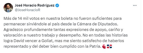 Horacio, comunicó en su cuenta de X que, “Más de 14 mil votos en nuestra boleta no fueron suficientes para permanecer sirviéndole al país desde la Cámara de Diputados”.
