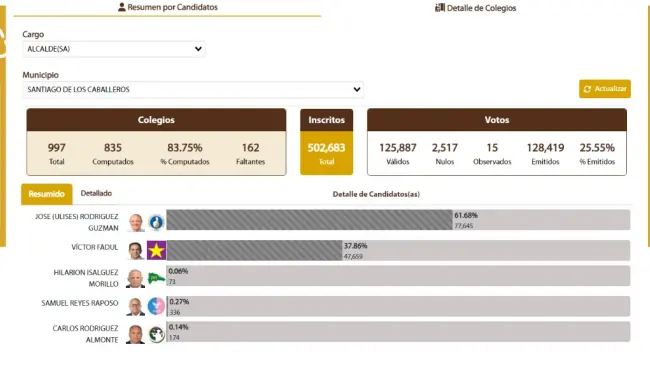 José Ulises Rodríguez lidera votaciones en Santiago de los Caballeros