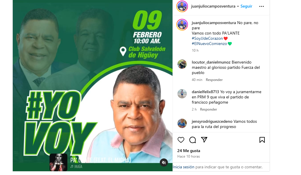 La información fue compartida por el mismo politico en su cuenta de Instagram. "Vamos con todo PA'LANTE", escribió junto a una imagen del partido verde.