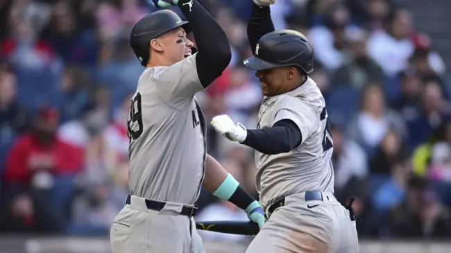 Miami.- Los Yanquis de Nueva York ganaron el doble compromiso de este sábado ante los Guardianes de Cleveland gracias a la soberbia actuación del dominicano Juan Soto y el venezolano Oswaldo Cabrera, con jonrón firmado por cada uno de ellos.