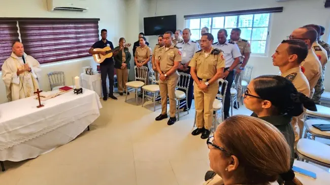 Durante la homilía, se elevaron oraciones por la salud del Ministro de Defensa, Teniente General Carlos Antonio Fernández Onofre, ERD., y su familia, en reconocimiento a su valioso apoyo a los proyectos que fortalecen nuestra institución.