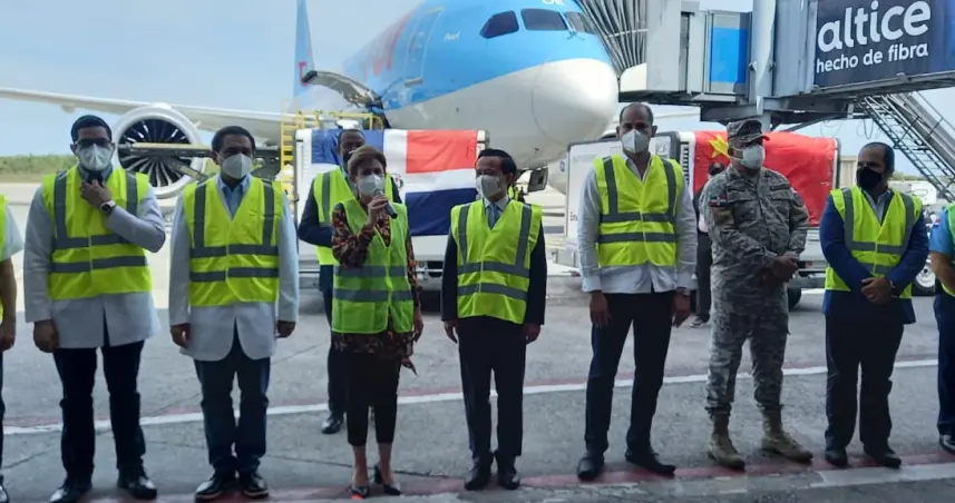 Las vacunas fueron recibidas por la vicepresidenta de la República, Raquel Peña, el ministro de Salud Pública, Daniel Rivera y el embajador de la República Popular China, Zhang Run.