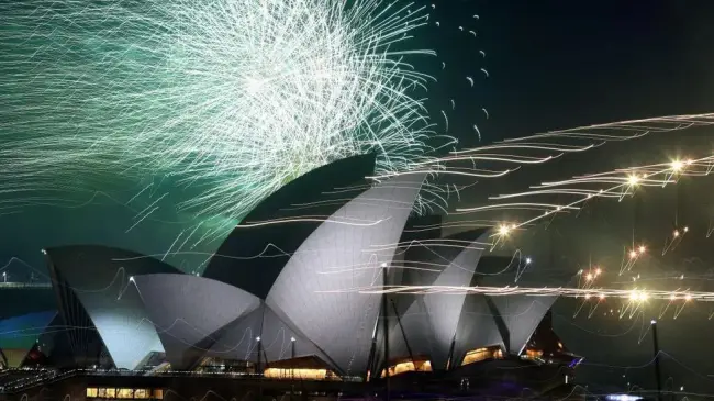 A diferencia con Nueva Zelanda, las autoridades australianas sí mantienen los tradicionales espectáculos de fuegos artificiales, incluido el que tiene lugar en la icónica Casa de la Ópera en la bahía de Sídney.