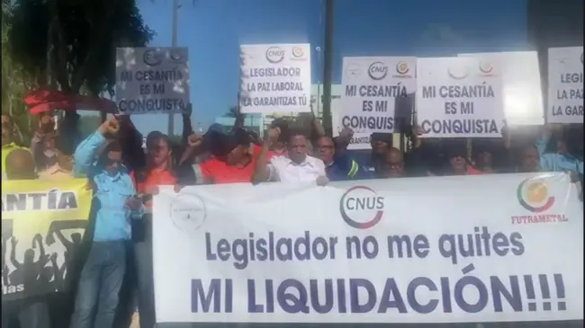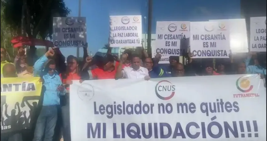 Santo Domingo.– SANTO DOMINGO.- Bajo la advertencia de que protestarán en las calles si se toca la cesantía en el proyecto de reforma al Código Laboral, organizaciones sindicales de los trabajadores, exigieron frente al Congreso a los legisladores que no toquen este derecho adquirido de los trabajadores.