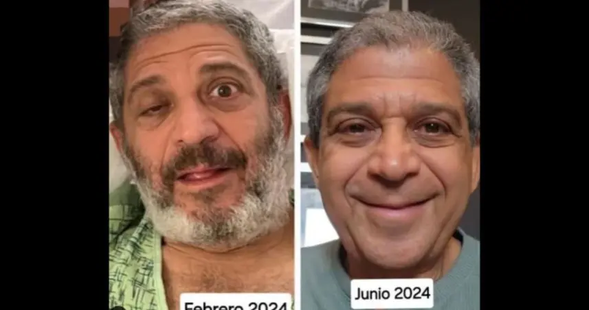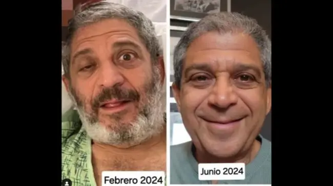 Galán, mostró una imagen de febrero del presente 2024 totalmente desmejorado en la cama de un hospital y otra de este mes de junio con buen estado de salud y de ánimo.