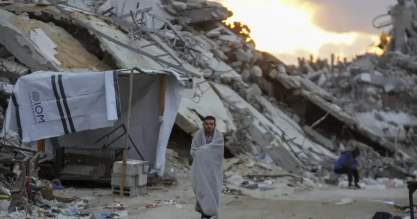 En Ciudad de Gaza (norte) Maher Ahmed Awda Abu Guafa, de 18 años, camina cargando con un pedazo de cartón que después utilizará para guarecerse: "Podemos morir y vivir en la humillación, pero no dejaremos Gaza", responde al preguntarle por las declaraciones del recién investido presidente de Estados Unidos.