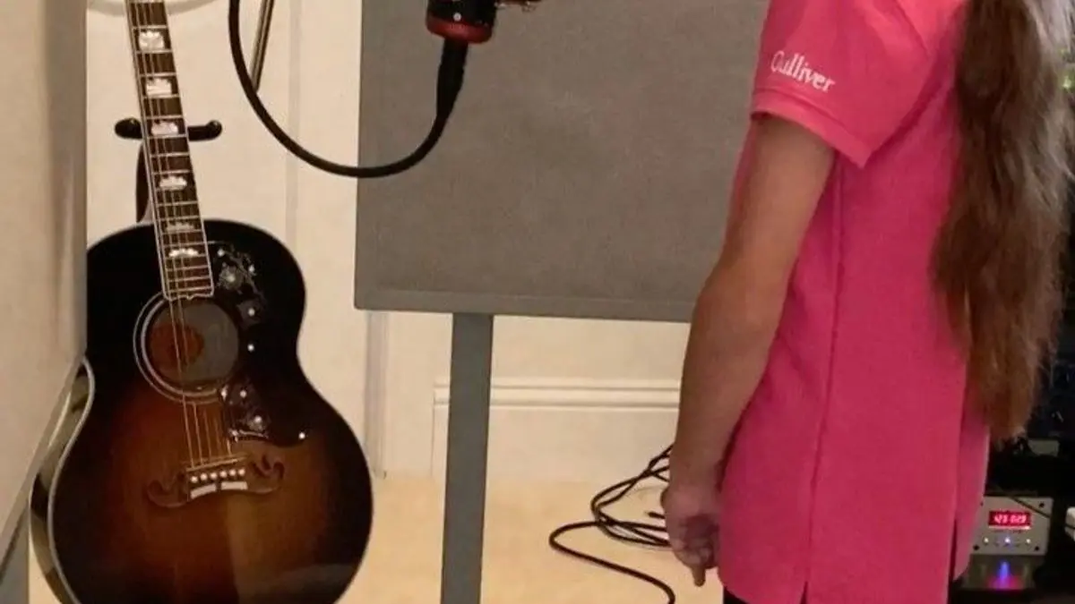 "Pues les cuento que en 2 minutos tenía el arreglo, la sesión, el mic listo, letra impresa y cámara grabando. Fue ella la que eligió la canción perfecta para este momento que estamos viviendo. Aquí les comparto un pedacito. 'We are the ones who make a brighter day, so let's start giving...'", concluyó el artista.