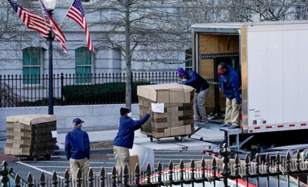 Washington.– Washington.- La imagen de un camión de mudanzas ante la Casa Blanca se ha hecho viral en las redes sociales donde numerosos internautas celebran lo que definen como el inicio de la salida de Donald Trump de la sede de la Presidencia.