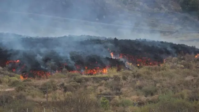 "Si la colada se mueve un poco más, mi finca se la lleva", afirma a Efe Vicente Amado, un agricultor que siempre se ha dedicado al plátano y que no puede acceder a sus tierras porque un muro de lava de diez metros ha tapado la carretera.