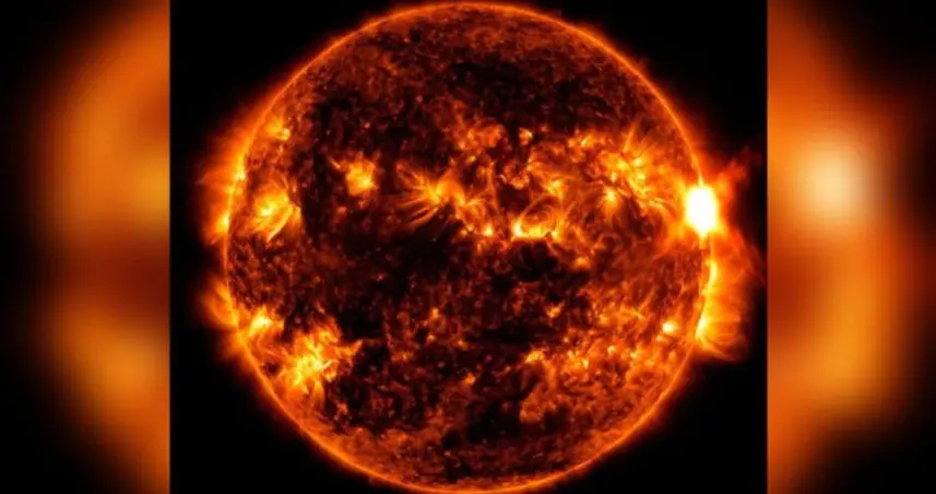REDACCIÓN.- El Sol emitió el pasado sábado una fuerte erupción solar, que alcanzó su máximo a las 22:21 horas GMT, según la agencia espacial estadounidense NASA, que a través de su Observatorio de Dinámica Solar pudo captar una imagen de este evento.