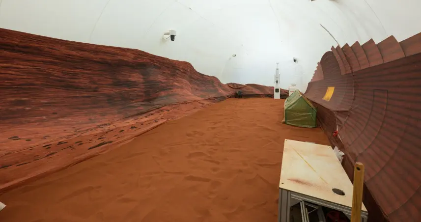 El hábitat cuenta con una zona para vivir con cuatro pequeños dormitorios, una sala de estar, una zona para cultivar alimentos y una enfermería. Además, hay una zona exterior que simula la superficie de Marte.