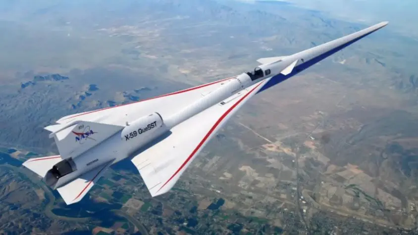 La principal característica del X-59 es su prolongada nariz, mucho más larga que la que tenía el Concorde, el avión comercial supersónico desarrollado de forma conjunta por Francia y el Reino Unido (1976-2003) y que era capaz de volar a dos veces la velocidad del sonido.