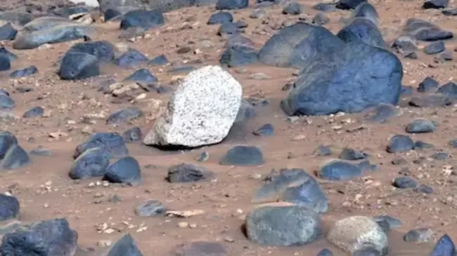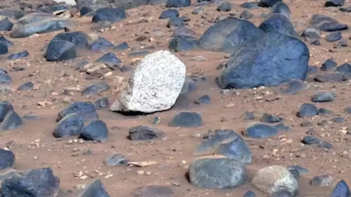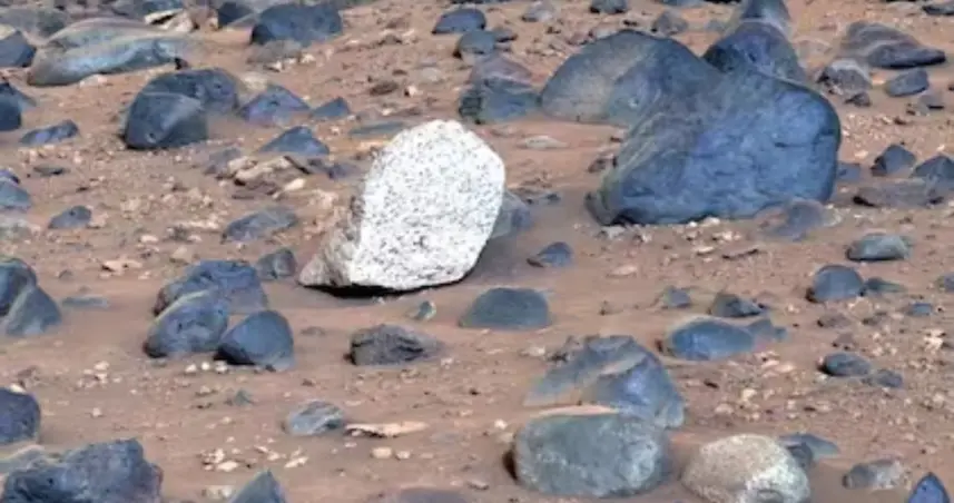 Asimismo, se vieron rocas irregulares de basalto volcánico de color azul arca rodeando la roca blanca moteada, una formación mineral diferente a todo lo que la NASA había visto jamás en Marte.