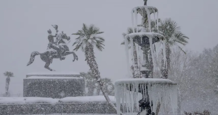 En Nueva Orleans, Luisiana, se registraron acumulaciones de nieve de aproximadamente cuatro pulgadas (10 centímetros), una cantidad inusualmente alta para la región.