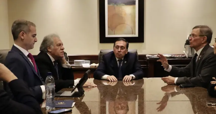 "Reunidos en la Ciudad de Guatemala para la toma de posesión presidencial, hacemos un llamado al Congreso de la República a cumplir con su mandato constitucional de entregar el poder como exige la constitución en el día de hoy, al presidente electo Bernardo Arévalo y a la vicepresidenta electa Karin Herrera", expuso Almagro.