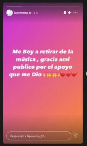 Mediante una historia, la artista, luego de informar sobre su retiro, agradece a sus fanáticos por como la han apoyado durante su trayectoria como cantante urbana.