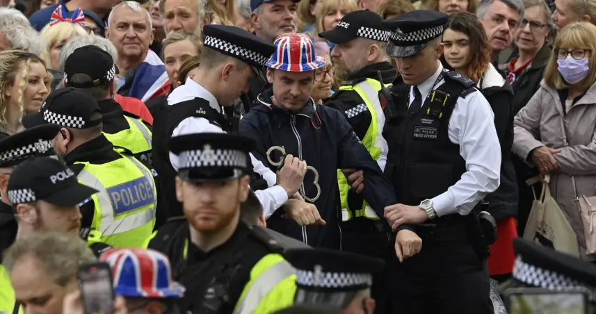 Entre los arrestos que comunicó la Policía Metropolitana, 14 de ellos se llevaron a cabo en la avenida The Mall, que desemboca en el Palacio de Buckingham, por donde pasó la procesión real antes y después de la ceremonia religiosa en la Abadía de Westminster.