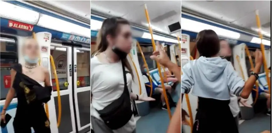 En las imágenes se ve a un individuo de mediana edad, visiblemente nervioso y agresivo, dirigirse a una de las pasajeras de su mismo convoy, que no sale en plano.