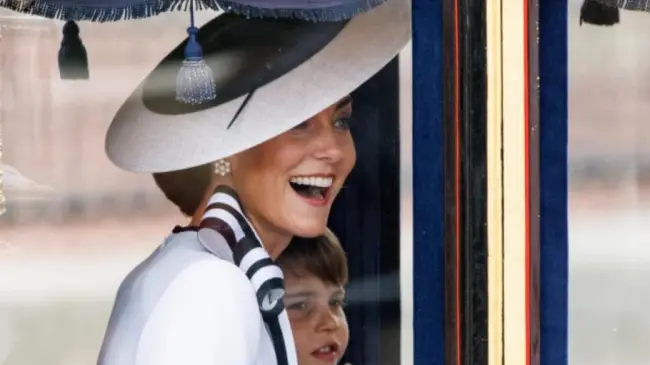 Londres.– Londres.- La princesa de Gales, Catalina, apareció este sábado por primera vez en público desde que le fue diagnosticado un cáncer, a bordo de una carroza junto a sus tres hijos en el desfile que celebra el cumpleaños oficial del rey Carlos III.