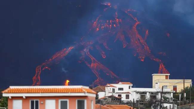 El volcán sufrió anoche una nueva ruptura del cono que ha provocado desbordamientos de magma y desprendimientos, haciendo que una gran cantidad de lava se mueva principalmente hacia el oeste, sobre la colada primigenia y la que discurre por encima de la montaña del municipio de Todoque.