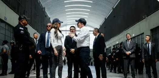 Kristi Noem recorrió el Centro de Confinamiento del Terrorismo en El Salvador, símbolo de la guerra contra las pandillas que impulsa el presidente Bukele bajo un régimen de excepción.