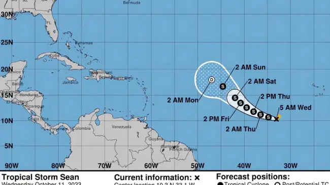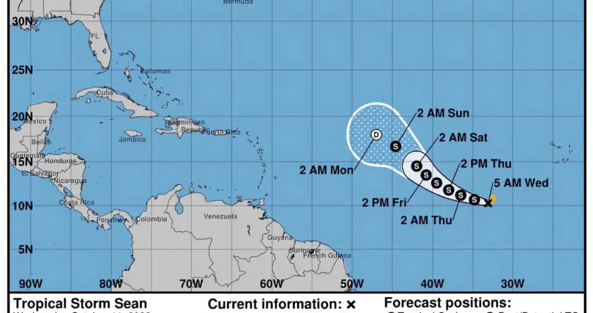 Miami.– Miami.- La tormenta tropical Sean, formada la mañana del miércoles, se mantiene este viernes en aguas abiertas del Atlántico, sin mayor cambio en su intensidad y sin suponer una amenaza para zonas costeras.