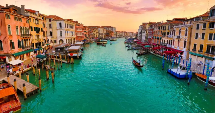 Venecia, fundada en el siglo V y convertida en potencia naval del Mediterráneo en el siglo X, es actualmente una de las ciudades más visitadas del mundo, con picos diarios de hasta 100.000 turistas que pernoctan en ella, mientras su población, de unos 50.000 habitantes, se reduce anualmente.