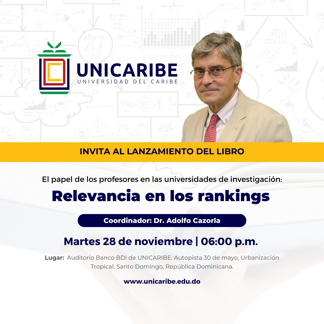 Santo Domingo.– SANTO DOMINGO.- Será lanzado este martes el libro “El papel de los profesores en universidades de investigación”, en una actividad llevada a cabo en la Universidad del Caribe.
