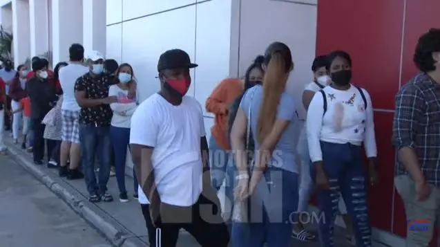 El distanciamiento en la línea era poco respetado, aunque para entrar a las instalaciones el uso de la mascarilla y la toma de temperaturas eran obligatorios, además de esperar que al menos 15 personas salieran para otros 15 poder entrar.