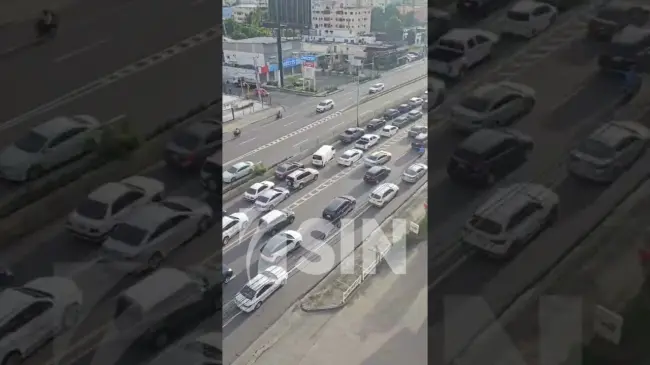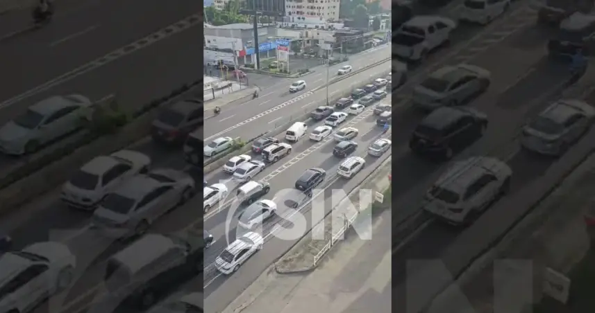 Reportan largo taponamiento en la avenida 27 de Febrero