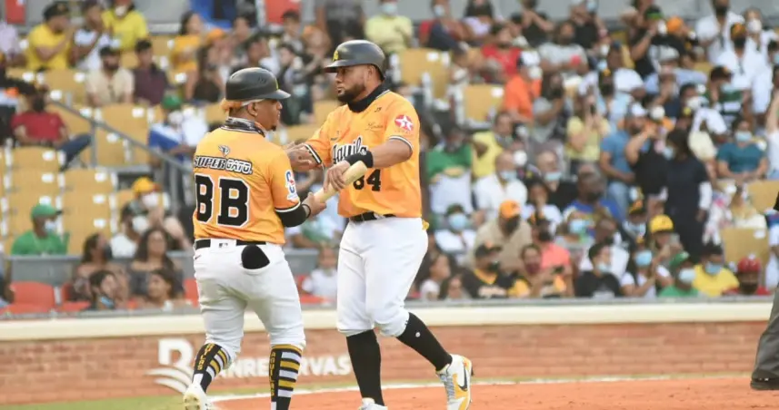 Los bates amarillos sonaron con jonrón de Zoilo Almonte y sencillos de Leody Taveras , Juan Carlos Pérez y Melky Cabrera.