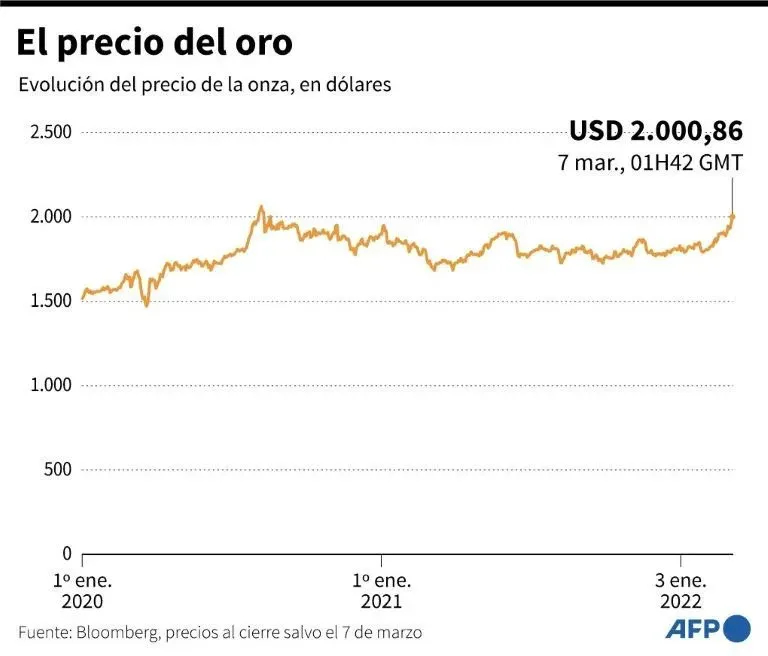Por su parte el oro, un valor refugio en tiempos de incertidumbre, superó brevemente la marca de los 2.000 dólares la onza.