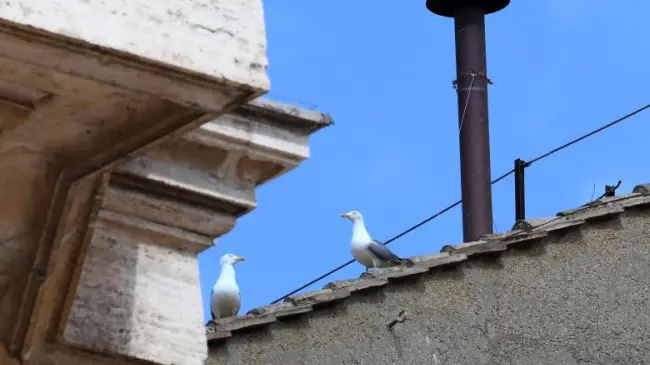 Las gaviotas se han colado hasta en el cónclave con el que la iglesia busca nuevo papa, posándose junto a la chimenea que deberá anunciar al mundo, con el color de su humo, si los 133 cardenales encerrados estos días en su interior han llegado o no a un acuerdo.
