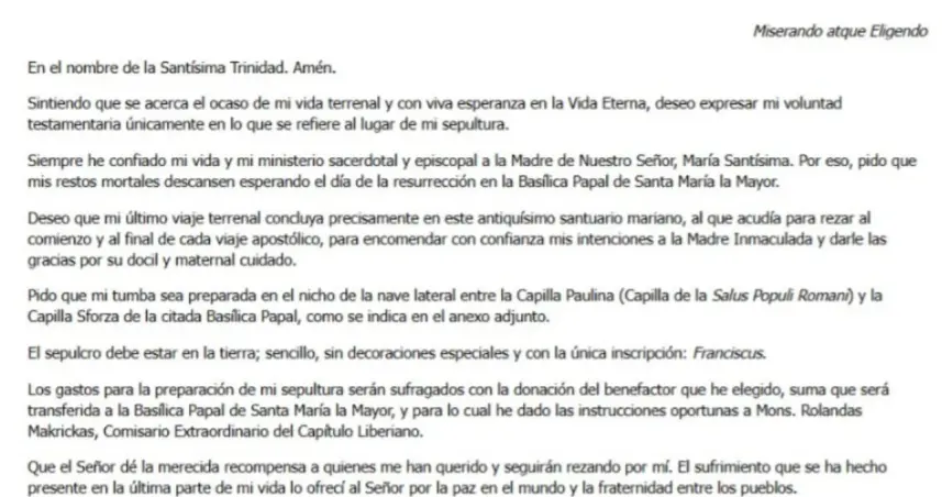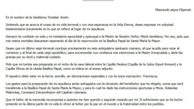 TESTAMENTO DEL SANTO PADRE FRANCISCO