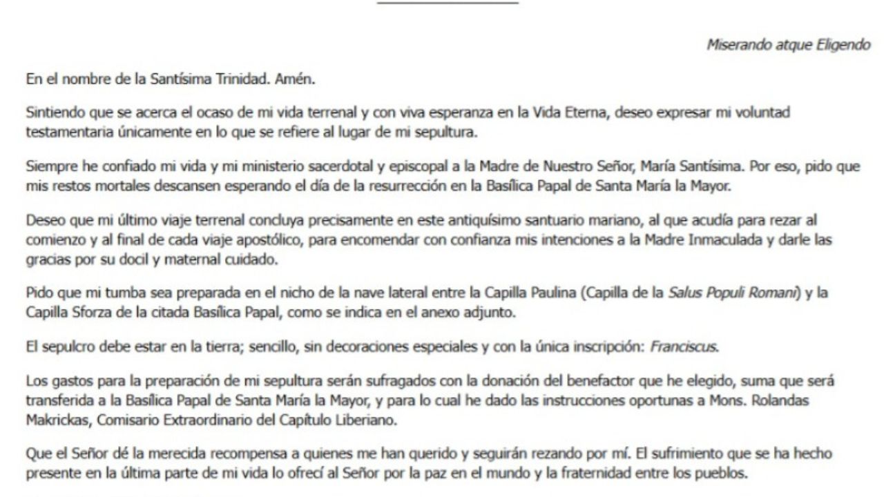 TESTAMENTO DEL SANTO PADRE FRANCISCO