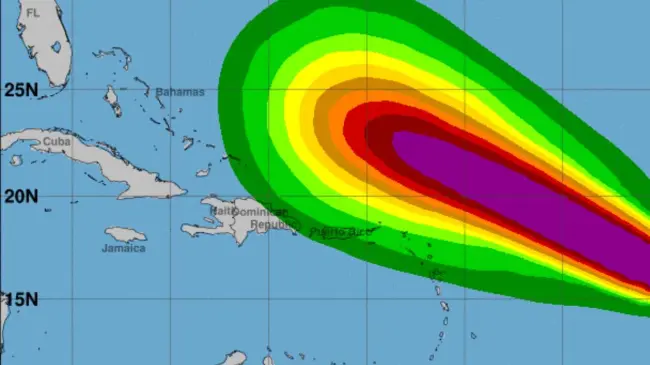 Según un probable patrón de trayectoria, el ojo de Lee se moverá por el norte del norte de las Antillas Menores en los próximos días.