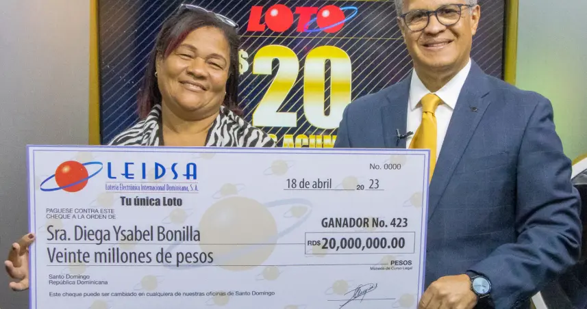 SANTO DOMINGO.- La señora Diega Ysabel Bonilla, recibió el cheque de 20 millones de pesos, correspondiente al sorteo de “Tu única Loto” del pasado sábado 25 de marzo del 2023.