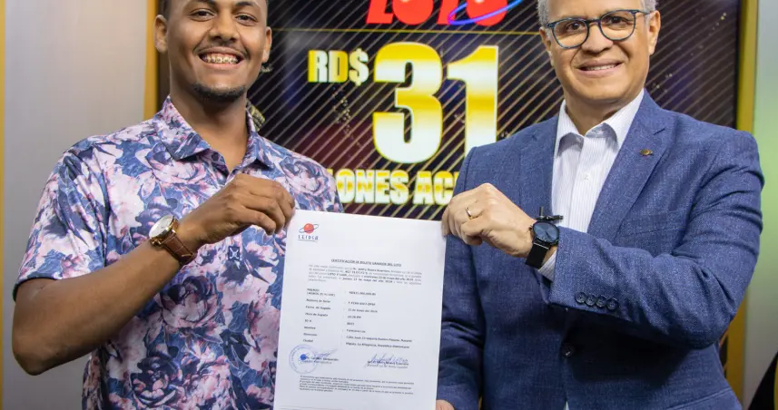 Santo Domingo.– SANTO DOMINGO.- La Lotería Electrónica Internacional Dominicana (Leidsa) informó, que el joven Jenfry Rivera Guerrero, recibió el certificado que lo acredita como el ganador de los 31 millones de pesos del sorteo Loto del pasado miércoles 22 de mayo.