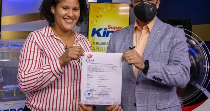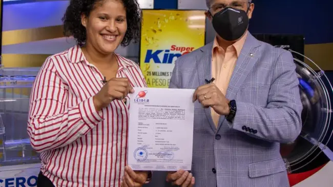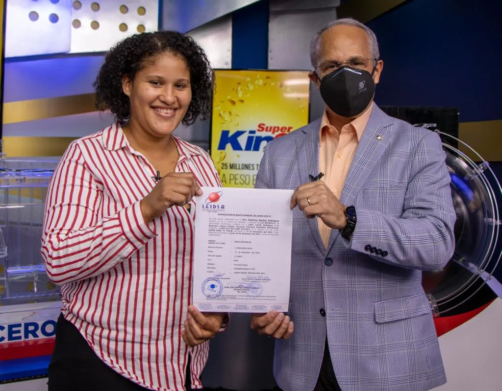 SANTO DOMINGO.- La Lotería Electrónica Internacional Dominicana, S.A, (LEIDSA) entregó el certificado que acredita a una nueva ganadora del sorteo del Súper Kino TV.